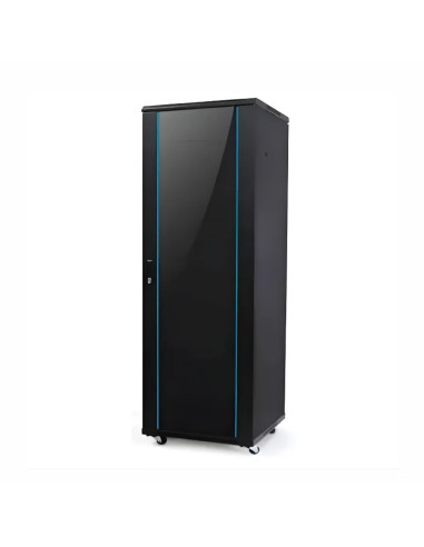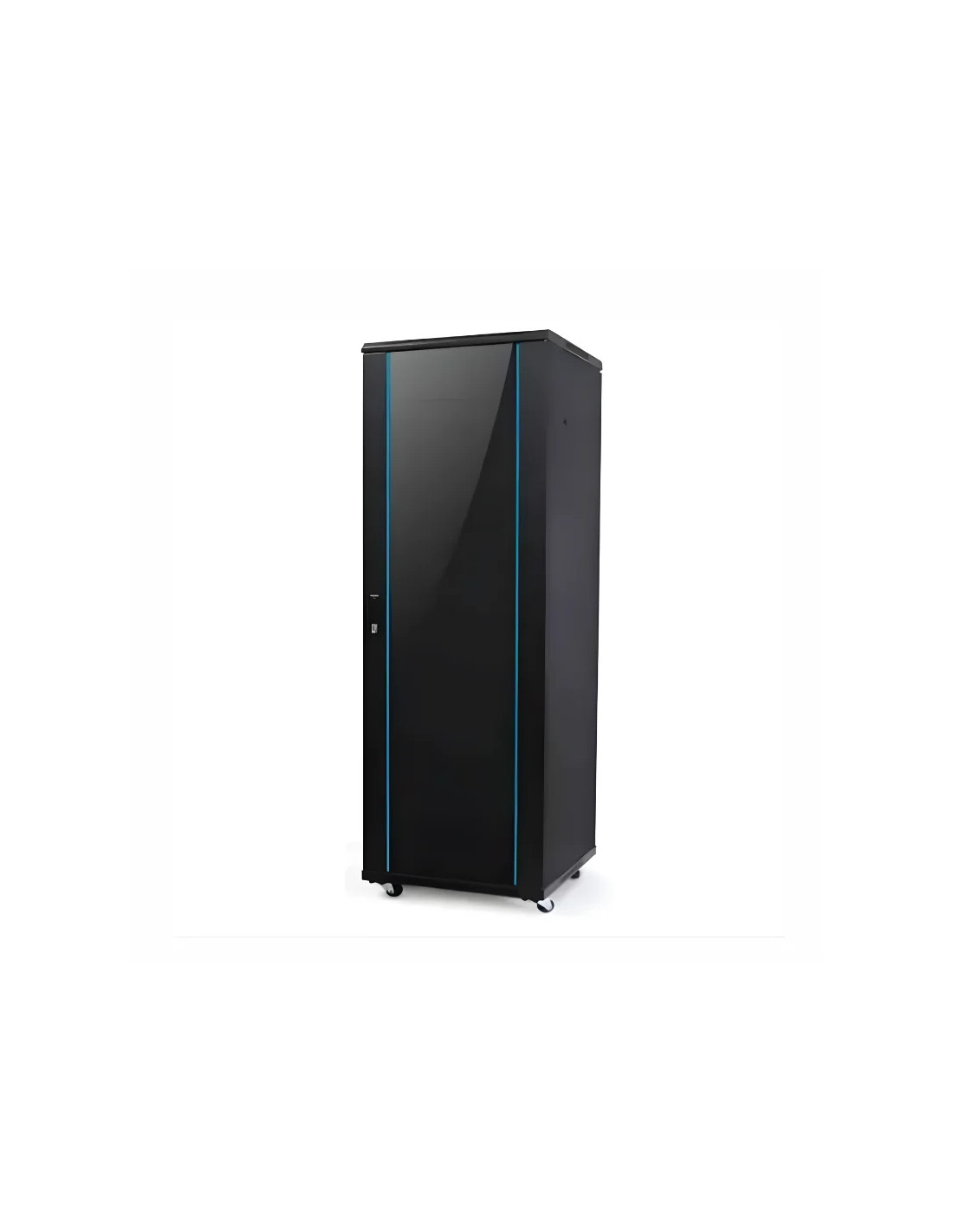 NETWORK CABINET, FLOOR MOUNT, 27RU, FRONT GLASS DOOR, REAR SOLID, METAL DOOR, 800MM WIDE, 800MM DEEP, 2 SHELVES, 1x6-WAY UK, PDU, 4 FANS, BLACK.